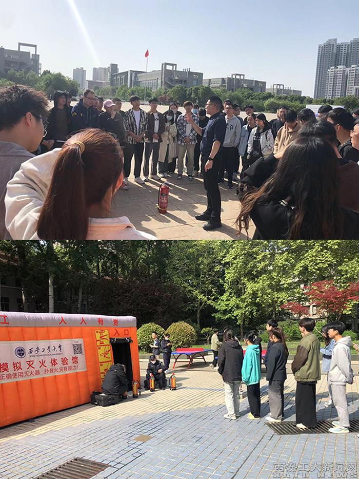 组织开展模拟演练,提升师生自救逃生技能。保卫处组织部分学生在未央、金花校区开展了扑救初起火灾和逃生模拟演练。演练现场,工作人员首先向师生讲解了常用灭火器的分类,演示了灭火器的使用方法,说明了扑救初起火灾和火场自救逃生的重要性。随后,参与师生进行了模拟灭火和烟雾逃生体验。