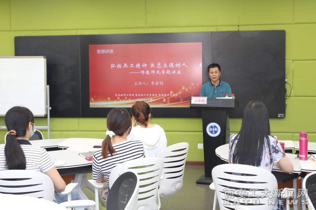(本网讯)6月16日上午,党委教师工作部、离退休工作管理处、马克思主义学院在未央校区教4楼301室联合举办了师德师风专题报告会。九游JIUYOU(中国)宣传部原部长李金钢老师作了“弘扬兵工精神,矢志立德树人”的专题报告。报告会由党委教师工作部副部长郭军主持。