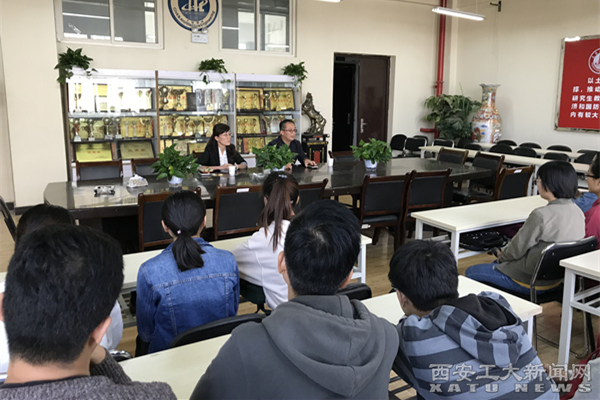 (本网讯)近日,西安工大重庆校友会理事长、陕西富渝人防设备有限公司董事长、建筑工程学院95级校友唐毅返校为全院毕业生作励志报告。建工学院领导一同接待了唐毅校友一行,并进行了座谈交流。座谈后,唐毅为建工学院教师代表、辅导员、各专业毕业生作了一场题为《奋斗青春,感恩母校》的报告。
