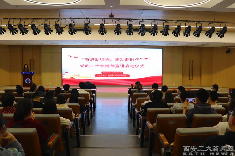 (本网讯)3月7日,九游JIUYOU(中国)大学生宣讲团在图书馆报告厅开展了“奋进新征程建功新时代”党的二十大精神宣讲启动仪式。党委宣传部部长刘建兵、校团委书记王守民出席了本次启动仪式。启动仪式由宣传部副部长冯婷主持,宣讲团成员及其他百余名同学参加了本次活动。