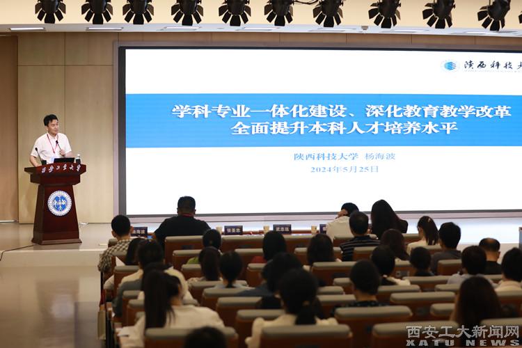 杨海波作题为《学科专业一体化建设、深化教育教学改革全面提升本科人才培养水平》的报告。他从以学科专业一体化建设为抓手,加大专业调整力度;以工程教育专业认证为抓手,深化教育教学改革;以教师教学能力提升为抓手,强化质量文化建设;以创新创业教育为抓手,注重学生创新能力培养四个方面,介绍了陕西科技大学在提升人才培养质量方面的举措。