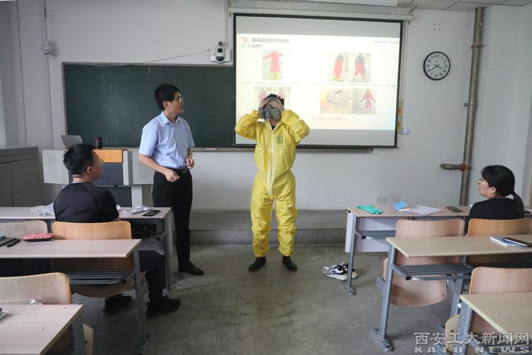 培训会最后,进行了防护服穿脱实战演练和消防栓灭火模拟演习。