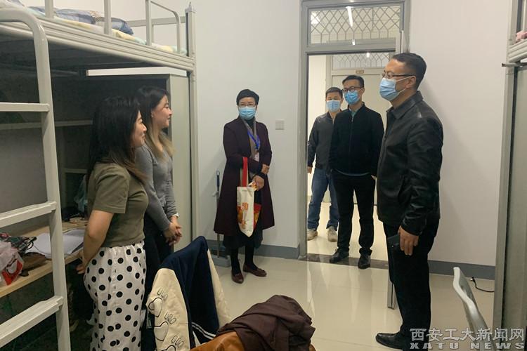 10月28日晚,马福与学工部、团委等部门主要负责人一行深入未央校区14公寓走访。走访中,马福亲切询问学生在新宿舍的生活情况,叮嘱学生考试前要放松心态、积极应对,考试中认真答卷并做好个人防护;在外出考试期间遇到任何问题要及时联系辅导员,学校会全力做好相关工作,为学生顺利参考、安全归来保驾护航。