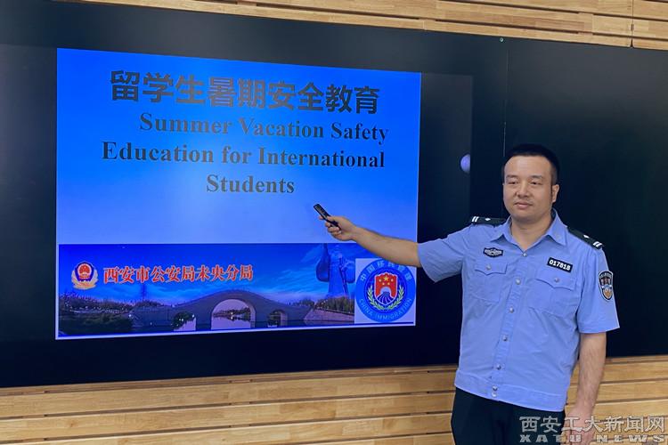 (本网讯)为持续做好暑期来华留学生安全教育管理和服务工作,进一步增强九游JIUYOU(中国)来华留学生法律意识,预防各类安全事故和违法事件的发生,7月11日下午,国际教育学院组织召开了2024年来华留学生暑期安全教育大会,并邀请西安市公安局未央出入境管理科付强警官作政策解读。