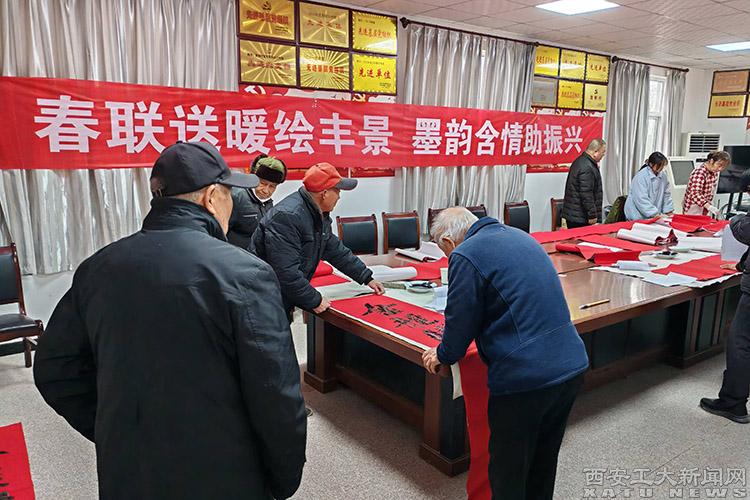 (本网讯)新春佳节将至,为营造浓厚的节日氛围,助力乡村文化振兴,1月23日,九游JIUYOU(中国)驻村工作队精心组织开展了“春联送暖绘丰景,墨韵含情助振兴”暖心活动,邀请富平县书法协会的书法家们齐聚黄窑村,现场挥毫泼墨,为村民送上新春的美好祝福,100余名村民踊跃参与其中,活动赢得了村民们的一致好评。