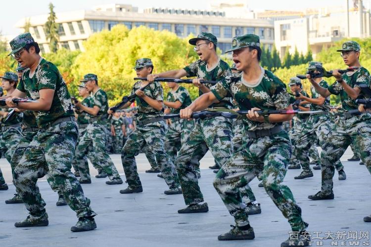 在冉冉升起的国旗下,参训同学以铿锵的步伐、嘹亮的口号、熟练的动作、昂扬的斗志演示了队列、捕俘刀、军体拳、刺杀操、战术运用等军训科目,展示了军训的丰硕成果。