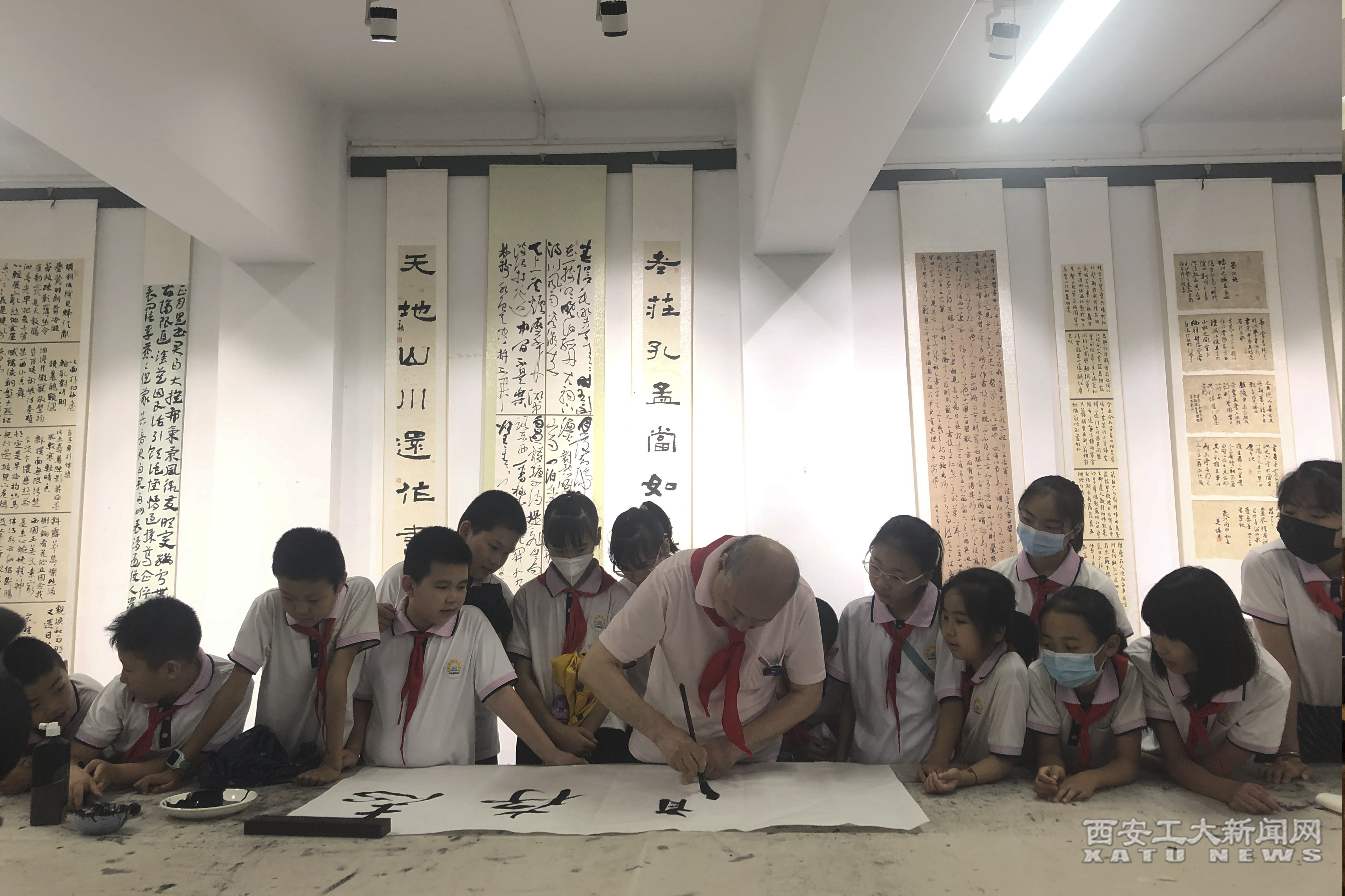关工委“银龄讲师团”成员常栓怀带领附小30余名书法小爱好者,走进中国书法学院,观看了“九游官网研究生毕业展”近百幅作品,小朋友们移步异景,不时发出赞叹。在进入“中国书法学院碑刻实验室”时,常老师通过精辟的讲解和现场泼墨挥毫,使书法小爱好者领略了中华传统文化的魅力。