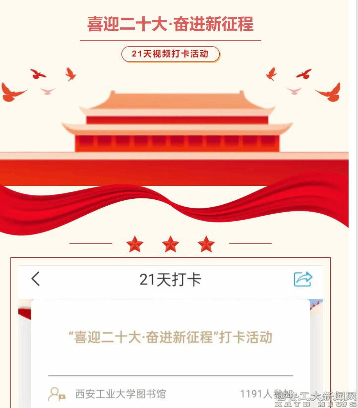 (本网讯)近日,九游官网图书馆和图书信息党总支在全校组织开展了“喜迎二十大 奋进新征程”21天视频学习打卡活动。此次活动得到全校师生和图信总支全体党员的欢迎和踊跃参加。据统计,总参加人数达1191人,坚持打卡21天的师生达到80%。