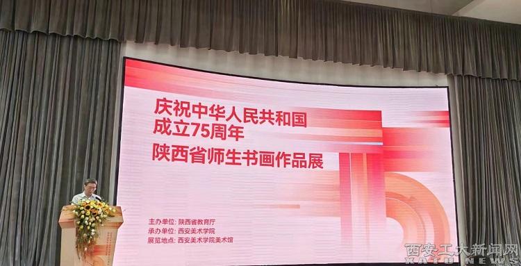 (本网讯)9月24日上午,由陕西省教育厅主办、西安美术学院承办的“庆祝中华人民共和国成立75周年陕西省师生书画作品展”在西安美术学院美术馆隆重开幕。中国书法学院教师牛似宝、刘振范入展,学生安星霓、魏明超、王旭、辛慧宁、张靖、周震闯入展,入展人数在陕西省师生队伍中名列前茅。