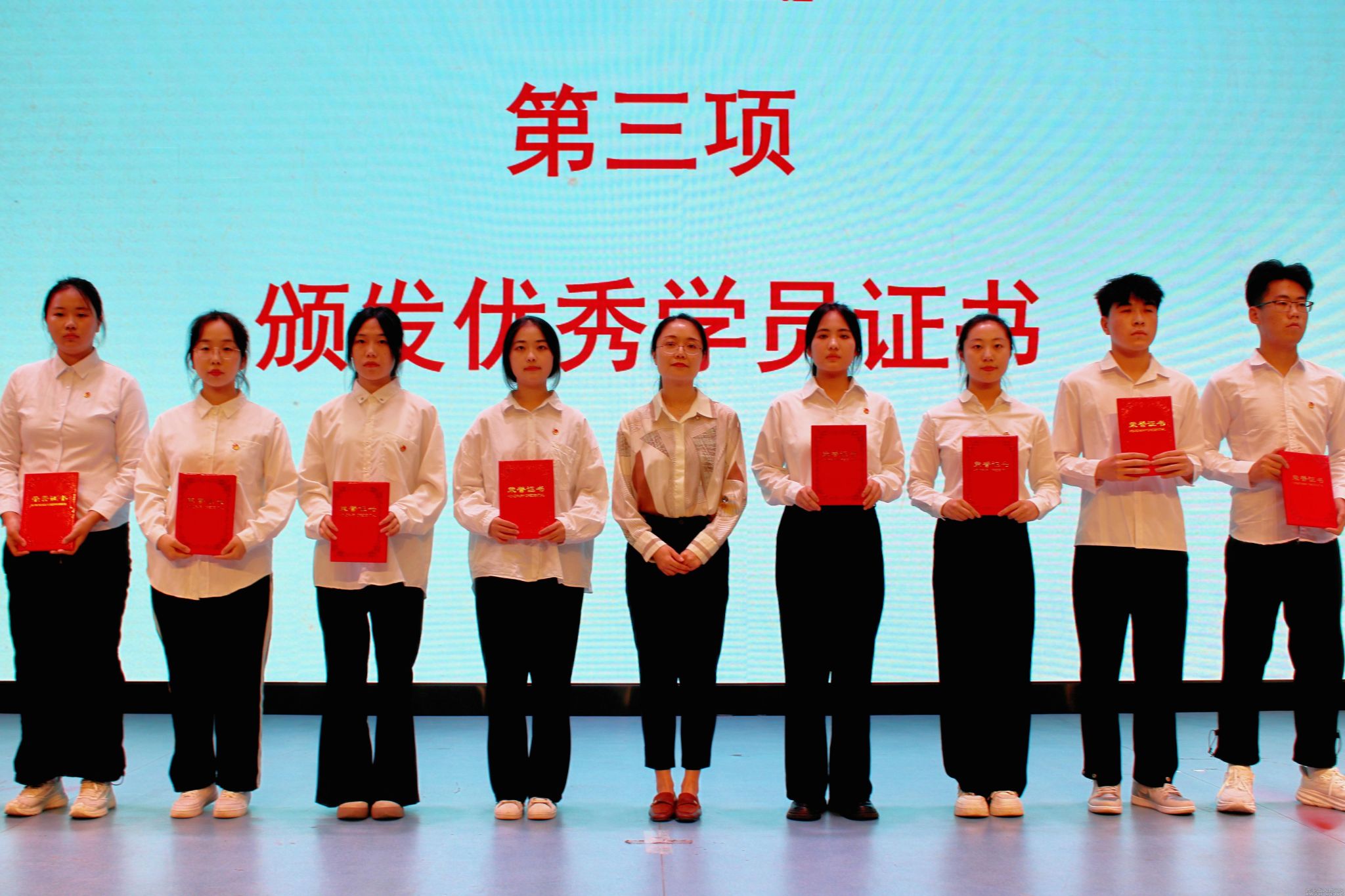 党委学工部(学生处)副部(处)长张晓宾宣读“青马工程”大学生骨干培训班第三十二期优秀学员名单,党委宣传部副部长、新闻中心主任冯婷为第三十二期优秀学员代表颁发荣誉证书。