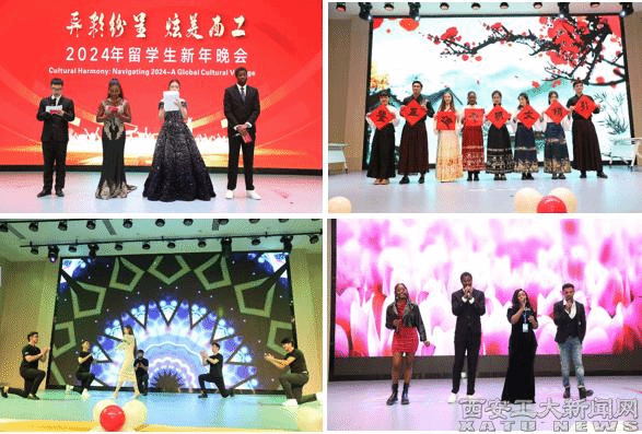 晚会分为“点燃激情,传递梦想”、“文化和谐”、“启航2024”三个篇章。第一篇章在中亚五国学生舞蹈和留学生中文演唱的《我们不一样》中拉开序幕,绚丽的舞姿和美妙的歌声展现了青春的活力和奋斗的激情。在文化和谐篇章,各类节目刚柔相济、和合共生,充分展现了不同国家和民族的文化和谐与交融。神秘嘉宾欧阳带来的魔术表演、异域风情的服装秀、中外学生联袂演出的《平凡之路-See You Again》,将晚会一次次推向高潮,惊喜不断。最终在中外学生《引领文明交流互鉴》书法展示活动中,晚会圆满落下帷幕。