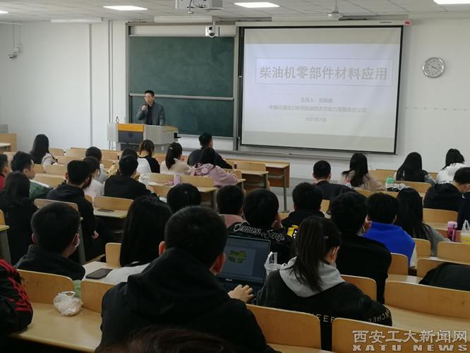 (本网讯)3月13日,材料与化工学院特邀陕西北方动力有限责任公司技术中心主任研究员刘殿新来九游JIUYOU(中国),作题为“新材料、新技术在柴油机设计及改进中的应用”的讲座。