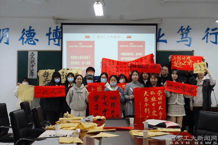 活动最后,全体与会师生党员共同学习了党的二十大报告金句,并用毛笔书写金句,一幅幅书法作品彰显出师生立志将二十大精神铭记于心、见诸于行的决心。