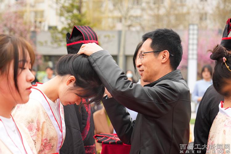 伴着礼乐,学生身着传统汉服入场。师长为学子依次加冠、加笄,标志着他们正式跨入成人行列。学子集体行感恩礼,感师长教诲之恩。学子代表领誓,铮铮誓言,师友为证,自此发奋图强。优秀学生代表、十佳大学生夏维婷发言,寄语新生不负韶华,砥砺奋进。