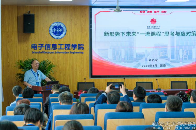 西北地区电子技术与线路课程教学改革研究会理事长,西安电子科技大学教授刘乃安致辞,并作《未来一流课程建设的思考与应对策略》的主题报告,他表示一流课程建设不是终点,而是持续改进的过程,需要在守正创新中实现突破。