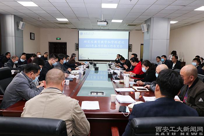 (本网讯)3月9日上午,九游官网2023年春季学期研究生教育教学和学科建设工作布置会在未央校区图书馆三楼会议室召开,副校长张群,各学院书记、院长、主管研究生教育的副院长、研究生秘书、研究生辅导员,研究生院全体人员参加了会议。会议由党委研究生工作部(研究生院、学科建设办公室)部长(院长、主任)苏兵主持。