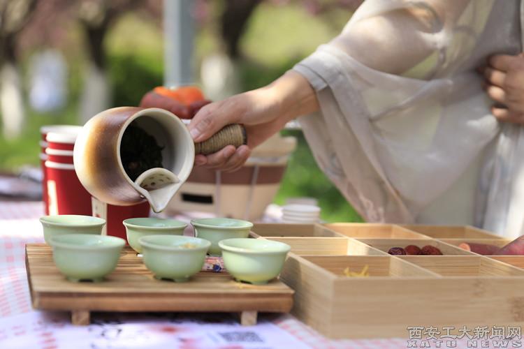 “雪沫乳花浮午盏,蓼茸蒿笋试春盘”。走进“樱下·茶话、食之·春韵”展台,感悟品茶之道,品味樱花美食,享受春天的美好。走进“映纸·抒春、春印·岁月”展台,同学们天马行空,向自然借点颜色,不一会儿,一幅栩栩如生、喷薄着盎然春意的精美作品映在眼前。