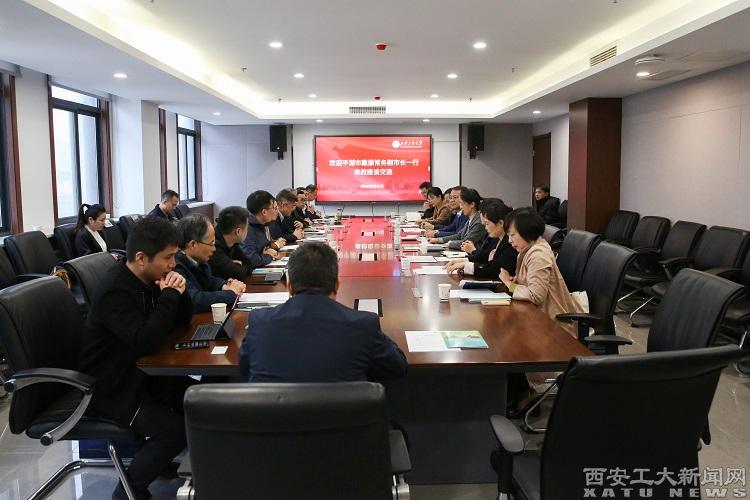 会上,马福对戴振一行的到来表示热烈欢迎,并就学校兵工特色办学背景及国防特色学科体系、专业设置、学科建设、近些年毕业生前往长三角地区就业情况等方面进行了介绍。