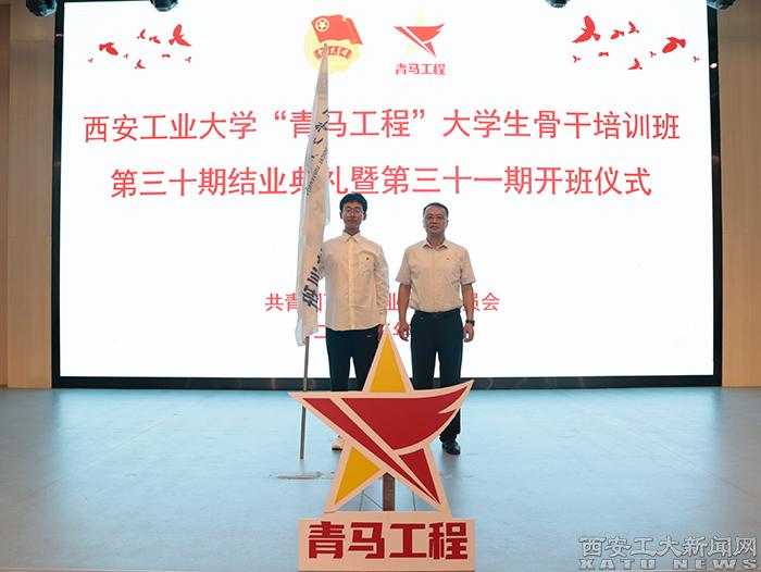 (本网讯)2023年9月21日,九游官网青年马克思主义者培养工程大学生骨干培训班第三十期结业暨第三十一期开班仪式在双创楼报告厅举行,校党委副书记马福出席并为新一期培训班授旗。