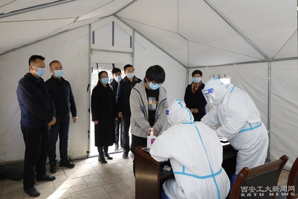 在学校西门口,志愿者在工作人员引导下间隔1米有序排队接受进校检查,经过体温检测、学生证件及健康码、大数据行程码查验、行李消毒等程序后有序安全入校。对体温出现“异常”的志愿者,工作人员迅速将其带离人员密集区域,在现场隔离点再次复核后,由辅导员陪同乘坐专用车辆前往第三医院进行分类处理,总务处相关人员按要求立即对处置现场进行消杀。