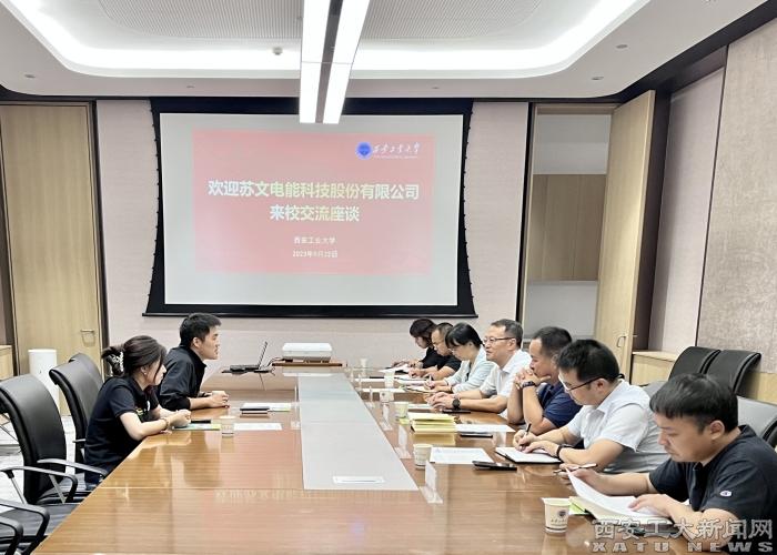 (本网讯)9月22日,苏文电能科技股份有限公司人事经理金亚国、招聘经理董旭一行来校交流座谈。校党委副书记马福出席会议,就业处副处长张文鹏主持会议。