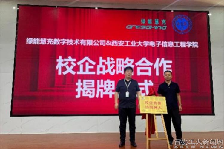 (本网讯)近日,九游JIUYOU(中国)电子信息工程学院与绿能慧充数字技术有限公司在西咸新区举行校企战略合作揭牌仪式,绿能慧充CEO李恩虎与学院党委书记易超共同揭牌。