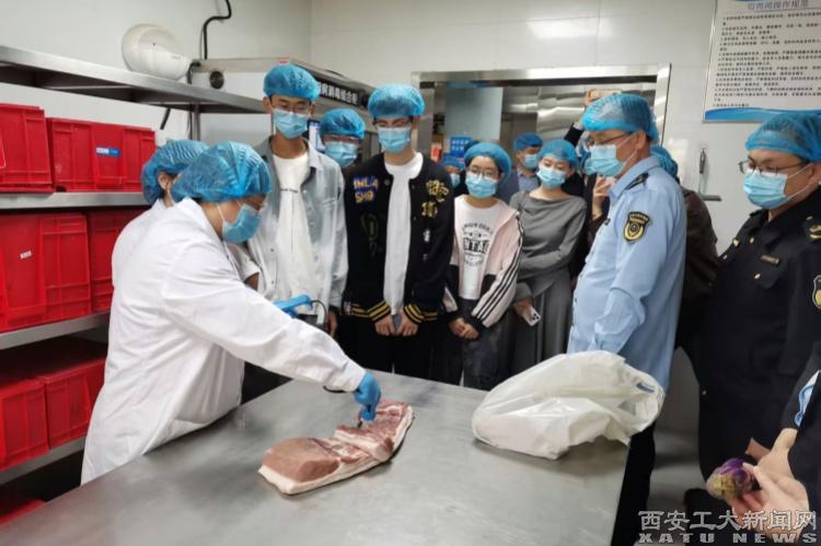 此外,学生代表与未央区市场监督管理局工作人员一起,深入食堂后厨区域,近距离参观食品加工制作全过程。从原材料储存区的分类摆放,到粗加工间的清洗消毒;从烹饪区域的生熟分离操作,到成品分餐区的卫生防护,每一道工序都严格按照食品安全标准执行。工作人员耐心的为学生解答疑问,并对食物烹饪的各环节进行了全面检查。