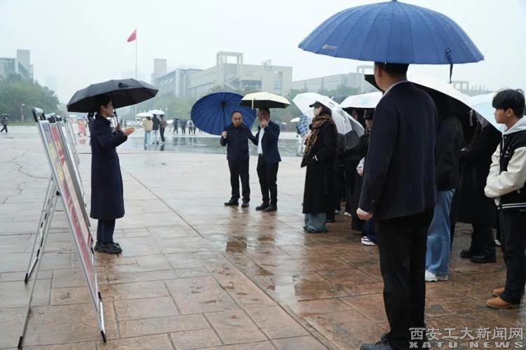 与此同时,纪念中国人民抗日战争暨世界反法西斯战争胜利80周年主题展、非遗项目及文创产品现场展示活动在经纬广场南北两侧同步进行。西安事变纪念馆的工作人员为现场师生进行了生动细致的讲解,通过珍贵的历史照片和真实的文物,让大家深入了解那段历史,铭记先辈们的英勇付出和伟大贡献,激发了师生的爱国热情和民族自豪感。