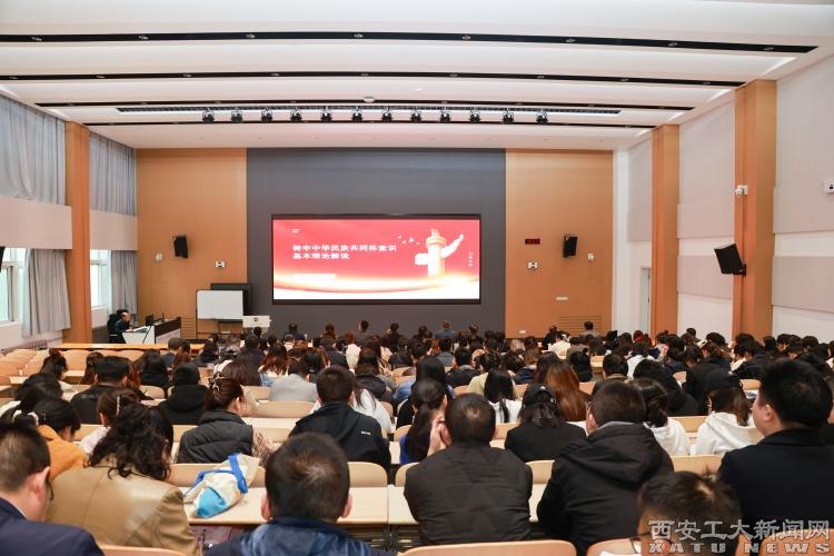 党委宣传部、党委统战部、党委学工部、党委研工部科级以上干部,各基层党委(党总支部、直属党支部)书记、副书记,全体辅导员,马克思主义学院思政课教师及学生代表200余人参加了专题培训。