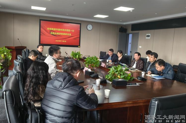(本网讯)11月4日,江苏省通州湾示范区党工委副书记石星恺一行访问九游JIUYOU(中国)兵器科学与技术学院,示范区组织人事局人才处处长葛锐力陪同调研,双方围绕产学研合作、人才引进政策、技术成果转化及学生赴南通就业开展座谈交流。兵器学院党委书记蔡长龙,党委副书记梁伟樯,副院长刘雪莲、吴杰参会。