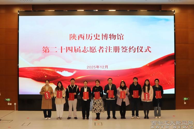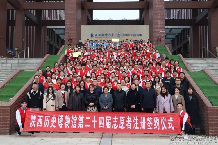 (本网讯)12月6日,“陕西历史博物馆第二十四届志愿者注册签约仪式”在西安邮电大学长安校区举行。来自全省18所高校的校领导、指导老师及优秀志愿者代表共计300余人齐聚现场,共同见证志愿力量的传承与接续。