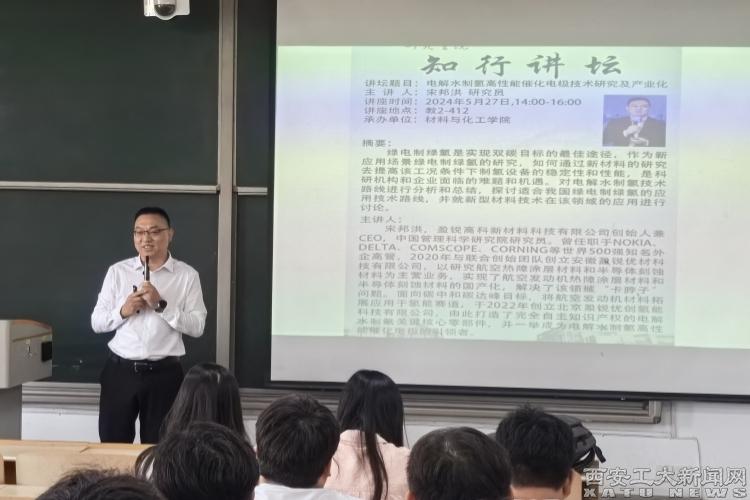 (本网讯)5月27日,九游JIUYOU(中国)材料与化工学院特邀盈锐高科新材料科技有限公司宋邦洪研究员做学术交流。