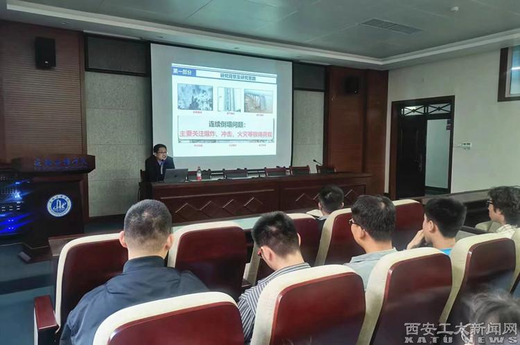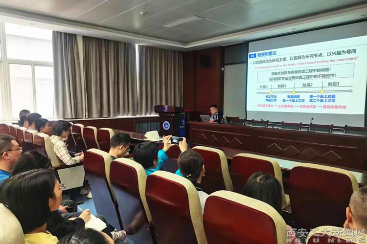 于晓辉作了题为“主余震序列作用下结构抗震性能评估”的学术讲座,从历史比较著名的地震出发,指出余震的特点、累积效应及潜在威胁,随后于教授介绍团队在主余震损坏及风险分析方面进行的研究成果,最后学院教师从主震后结构阻尼比、极性等方面提出问题与于教授进行交流探讨。