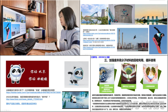 材化学院罗春燕老师讲授《高分子材料与可持续发展》课程,罗老师备课充分,注意调动学生的兴趣和注意力,准备了一些课外链接,制作了精美的PPT课件。在讲述过程中,以“北京冬奥会中的环保高分子材料和可持续发展理念”专题,向同学们分析绿色材料助力低碳冬奥会、贯彻“可持续发展”和“碳中和”理念的各项举措,让学生进一步认识到可持续发展的重要性。通过播放我国选手在首钢大跳台的精彩比赛视频片段,引出首钢大跳台的设计、建设理念—“可持续发展”,选材与课程内容紧密联系,对学生进行了很好的可持续发展理念的教育。然后通过“冰墩墩”将学生的注意力引入到助力冬奥会的高分子材料及环保举措中,尤其是“回收塑料瓶制造的清废团队工作服,以及冰墩墩填充物——再生云绒”,让学生充分认识到了高分子材料的重要性及相应的环保举措。通过提前布置任务,让学生准备资料,制作PPT,在规定的时间内完成小课题的汇报。同学们积极准备,参与性较高。课堂上引入北京冬奥案例,让学生在学习其中的专业知识之余,也让如此成功、环保的北京冬奥与学生更为贴近,进一步激发了学生对专业、对祖国的热爱之情。