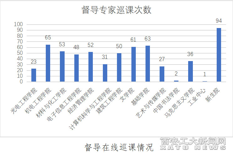 教学督导专家根据课程线上教学路径,深入课堂开展线上巡课,对线上教学质量进行监控与指导。在巡课过程中重点关注教学规范、平台使用、学生出勤、教学设计、课程思政、师生互动等线上教学活动开展情况。