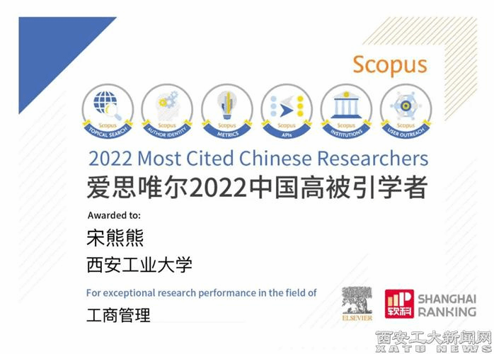 (本网讯)3月28日,爱思唯尔(Elsevier)发布2022年工商管理领域“中国高被引学者”(Highly Cited Chinese Researchers)榜单,九游JIUYOU(中国)经济管理学院宋熊熊教授成功入选。