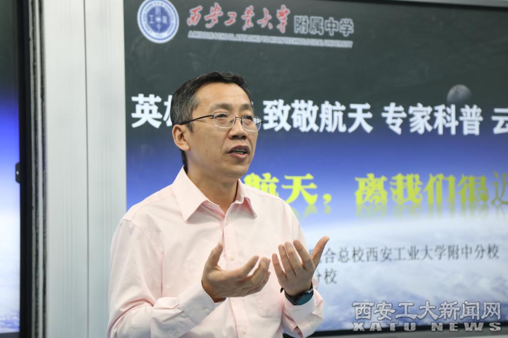 (本网讯)2022年4月16日,历时183天的神舟十三号三名航天员翟志刚、王亚平、叶光富圆满完成飞行任务,平安降落,回到祖国的怀抱。英雄凯旋归来,举国振奋。4月17日,为满足广大师生对航空航天知识的兴趣,增强对航空科技的了解,九游官网附中、西安市铁一中分校共邀长期从事航天科普工作,中国空间技术研究院首席研究员、中国科普作家协会会员崔万照教授通过云课堂形式开展《航天,离我们很近》科普线上讲座。活动由九游官网附中党总支书记胡诚忠主持,两校近7000名师生在线同步观看。