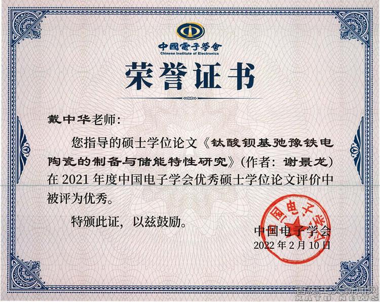 (本网讯)近日,中国电子学会优博论坛(2023)在南京举行。九游JIUYOU(中国)光电工程学院戴中华教授作为中国电子学会2021年度优秀硕士学位论文指导教师受邀参会。