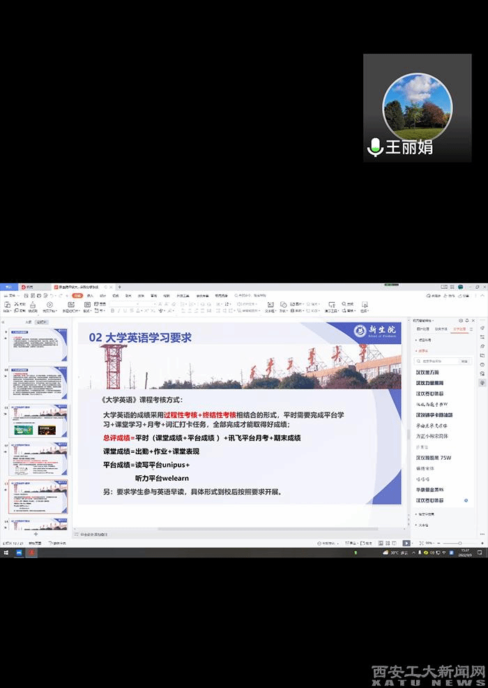为了便于学生对于大学英语课程学习有一个简单的前期了解和认识,依据《大学英语》教材和教学要求,新生院特制定了2022级《大学英语》学习要求。2022年9月7-11日,新生院召开了2022级新生线上年级大会。在年级大会上,由班主任对此要求进行宣讲和解读,开启2022级学生对于大学课程的认识之旅。