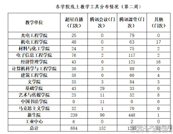 第二周线上教学稳步推进,上课教师774人,应开课2182门次,实际开课2182门次,课程开出率100%,应上课学生数135300人次,实到学生数134507人次,学生到课率99.41%。在全校师生共同的努力下,九游JIUYOU(中国)第二周线上教学工作运行平稳,总体情况良好。