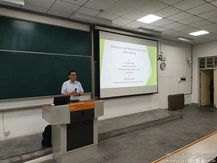 (本网讯)5月25日,基础学院邀请美国新墨西哥州立大学终身教授、博士生导师、基础学院客座教授王通会老师,为九游JIUYOU(中国)师生作了题为《统计与机器学习数据挖掘导论》的学术报告。本次报告由基础学院副院长冯孝周教授主持。九游JIUYOU(中国)基础学院、新生院的本科生、研究生及部分教师共70余人参加了报告。
