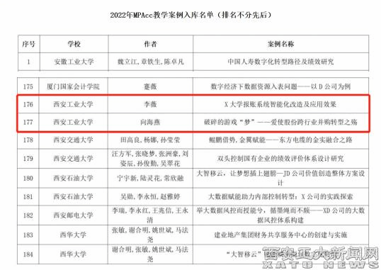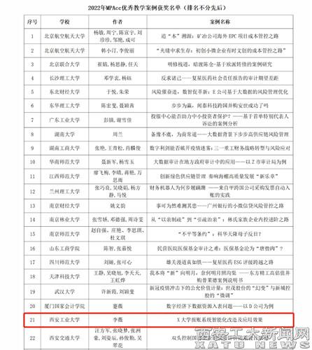 (本网讯)近日,全国会计专业学位研究生教育指导委员会分别公布了2022年MPAcc优秀教学案例奖和2022年MPAcc教学案例入库案例名单。