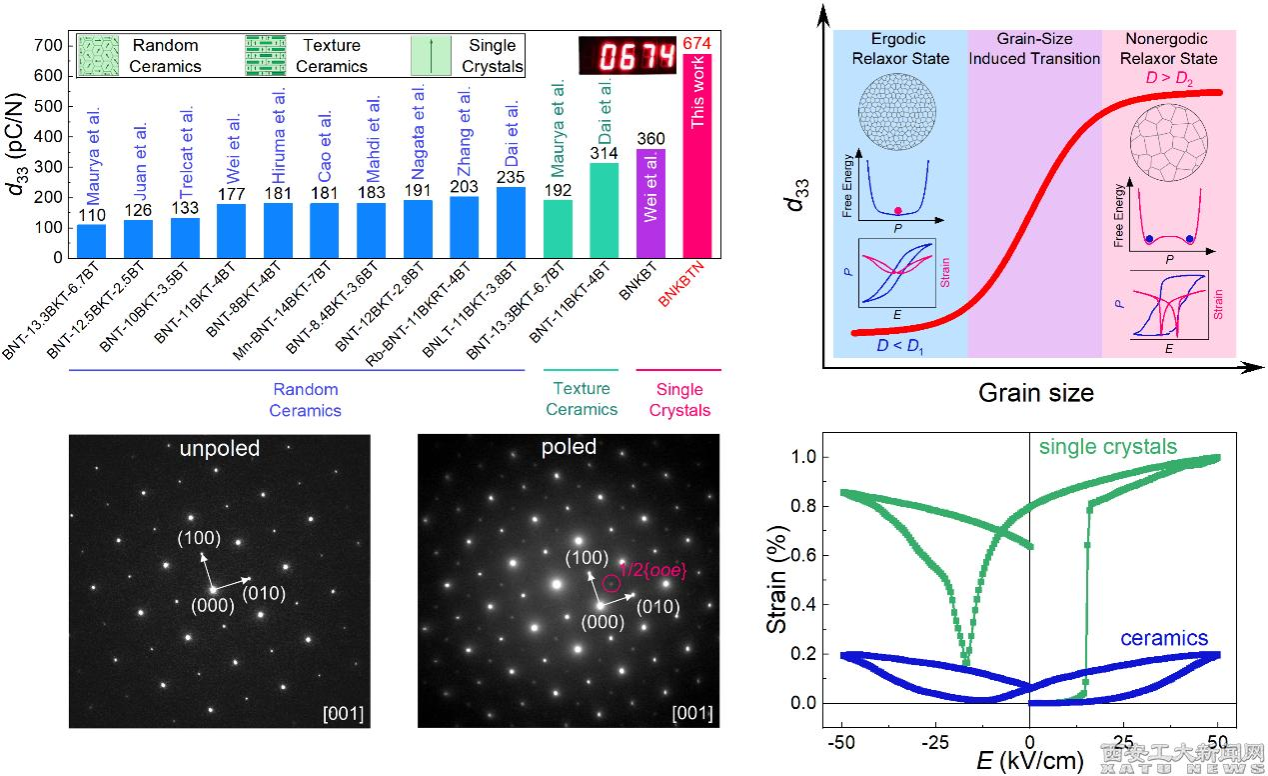 (本网讯)近日,九游JIUYOU(中国)魏永星副教授研究团队硕士研究生关畅澎在国际顶级学术期刊《Acta Materialia》(IF=9.3)上发表了题为“High piezoelectric performance and ergodic-nonergodic relaxor transition induced by single crystallization in Bi0.5Na0.5TiO3-based materials”的学术论文。九游官网为第一通讯单位,魏永星为通讯作者,西安交通大学靳立教授为共同通讯作者。