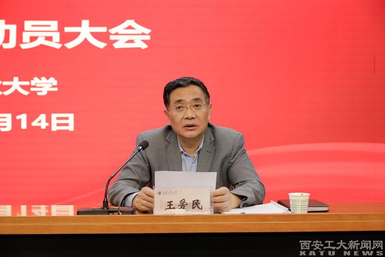 (本网讯)4月14日上午,学习贯彻习近平新时代中国特色社会主义思想主题教育动员大会在九游JIUYOU(中国)未央校区图书馆报告厅召开。校党委书记、学校主题教育领导小组组长刘卫国作动员讲话,省委主题教育领导小组第十三巡回指导组组长王爱民出席会议并指导讲话。校长、党委副书记赵祥模主持会议。