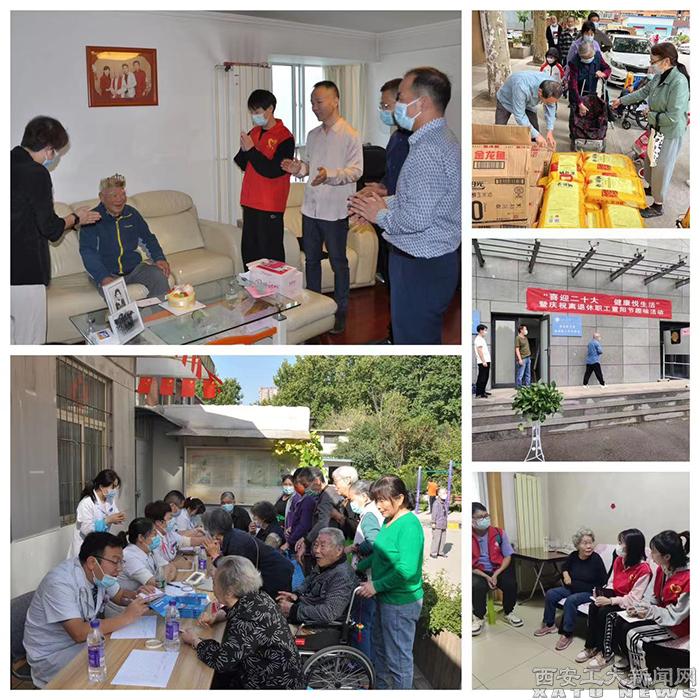 关爱满满、温暖过佳节。为使广大老同志欢度祥和快乐的节日,学校为每位离退休教职工发放了节日慰问品,离退处精心组织,各楼楼长积极参与,同时带领志愿者为行动不便、高龄老人送慰问品到家。9月29日,离退处开展了入户祝寿活动,为30位90岁以上的老同志和离休老干部祝寿。离退处领导和助老志愿服务队的学生到老同志家中举办别开生面的祝寿小仪式,送上一个蛋糕和一张精心制作的祝福贺卡,唱上一首祝寿生日歌,老同志们布满皱纹的脸庞洋溢着幸福的笑容,对学校的关怀表示衷心的感谢。