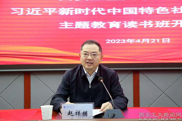 (本网讯)根据学校主题教育实施方案安排,学校学习贯彻习近平新时代中国特色社会主义思想主题教育读书班4月21日在未央校区学术报告厅开班。校长、党委副书记、学校主题教育领导小组副组长赵祥模作动员讲话。校党委副书记、纪委书记、监察专员王发合主持开班式。