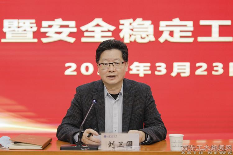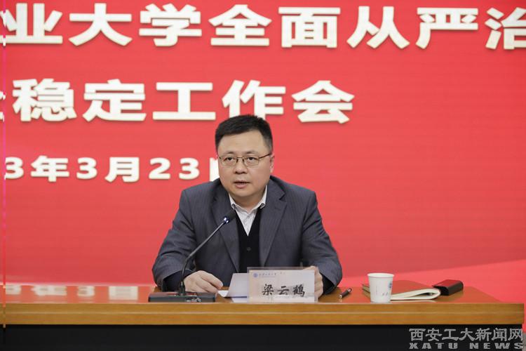 (本网讯)3月23日,学校全面从严治党暨安全稳定工作会议在未央校区召开。党委书记刘卫国、党委副书记马福、副校长刘发林、总会计师段小存出席会议。会议由党委副书记梁云鹤主持。