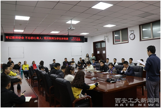 (本网讯)10月15日,机电工程学院党委组织开展“不忘初心、牢记使命”主题教育系列活动之“教师党员为学生上党课”第一讲,本次活动邀请到陕西省中青年科技创新领军人才、机电工程学院党员教师唐霖作为主讲人,为学生党员分享自己的求学、科研以及工作经历和人生感悟。